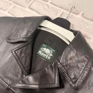 Roots Vintage Genuine Leather Jacket Black Women’s Large 90’s Y2K