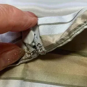 This is in excellent used condition. It has a 14 inch hidden zipper at the back with a hook and eye closure.