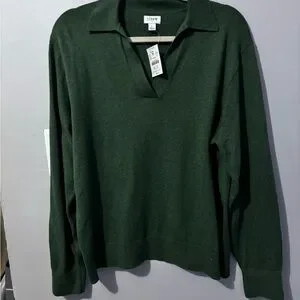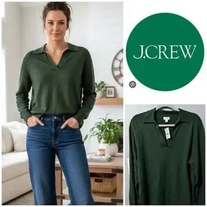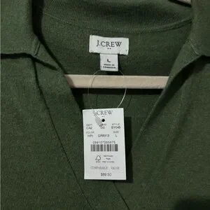 NWT!! J. Crew Dark Green Knit 100% Cotton Polo Sweater