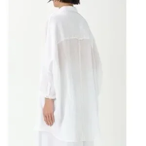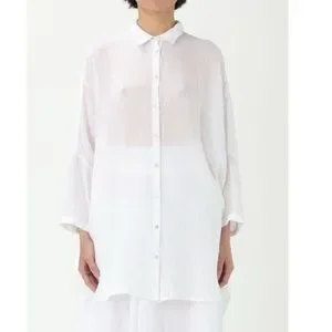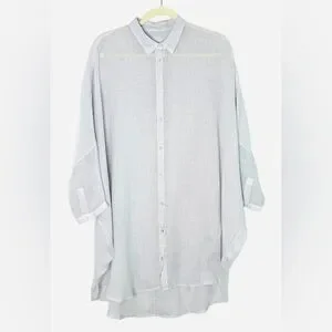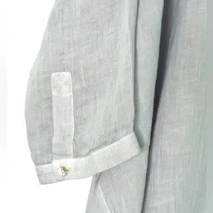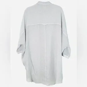 120% LINO Oversized Long 3/4 Sleeve Linen Button Down Lagenlook Top M