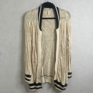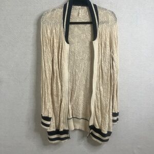 Free People Lace Knit Zip Cardigan Sweater M | Boho Varsity Style