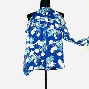 C Boho Chic Floral Blouse Chiffon Cold ShoulderBlue Top By C Size Small