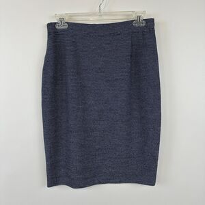 St John Collection Marie Grey Santana Knit Skirt sz 4 Zip Up Dark Navy Stripe