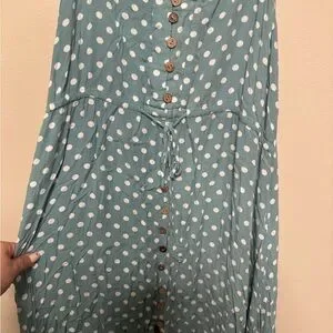 Light weight - teal maxi dress with playful polka dots. Perfect for a hot summer day.