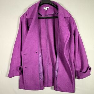 Liz Claiborne XL Coat Womens Wool Single Breasted Mid Length Jacket Purple