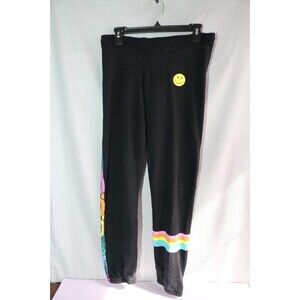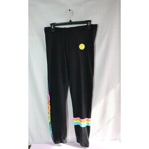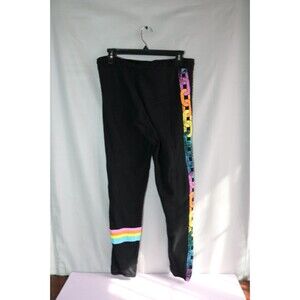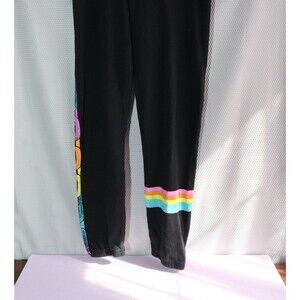 The Lauren Moshi Joggers in Size S are colorful sweatpants with a reggae stripe and adjustable elastic waist, perfect for a casual and comfortable look. Made of cotton, these black pants feature a unique colorful chain accent, suitable for a variety of occasions such as nature-themed outings, hipster gatherings, music festivals, and more. With a blend of hipster, hippie, punk, and peace-themed elements, these sweatpants bring a fun and relaxed vibe to your wardrobe, ideal for all seasons.