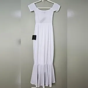 Lulus How Much I Care White Velvet Off-the-Shoulder Midi Dress, Size XS