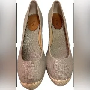 JCREW Seville Espadrille Wedge in Metallic Grey Canvas Jute Heel Shoe Womens size 7