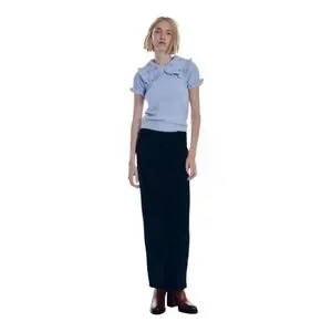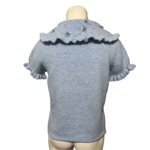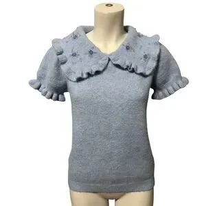 ZARA Peter Pan Beaded Collar Blue Cropped Knit Sweater Ruffle Trim Women’s Large