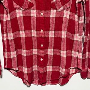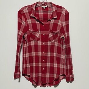 Classic Women's red Yarn Dyed Plaid front pockets Button Down Lucky Brand Shirt