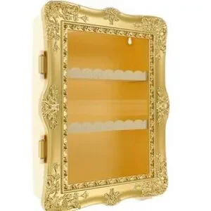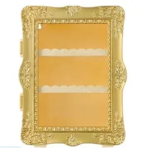 Show off your faves in major glam style! This gilded display shelf features an ornate gold frame that instantly upgrades your space. Perfect for makeup, mini collectibles, or décor accents—and versatile enough to use on a tabletop or hang on the wall.