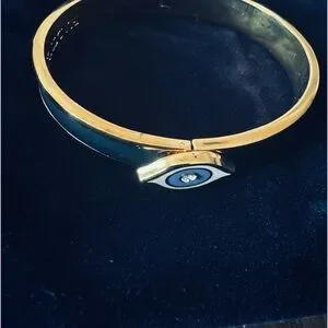 Legend has it that wearing an evil eye helps to protect you from evil forces. To be on the safe side, start wearing one of our elegantly simple evil eye hinged enamel bangles and keep those malevolent spirits at bay.
