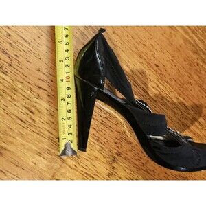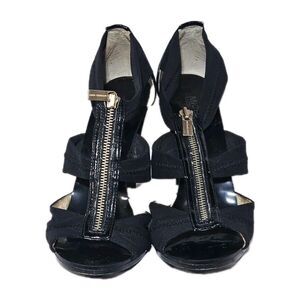 Michael Kors Berkley TStrap Sandals Black Patent Leather Zip Front Heels Size 10