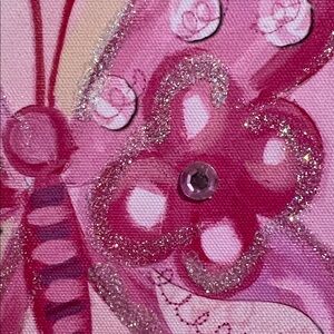 Beautiful Colleen Karis 3 butterflies canvass wall art for kids bedroom or toy room In excellent condition with sparkles and jewels. * Item is in excellent condition * Canvass measurements: 24” wide x 20” high x 1” 7/8 thick * Comes from a smoke free home