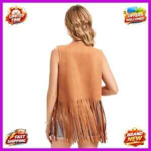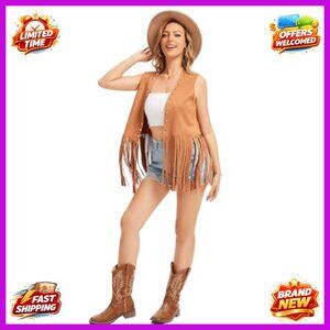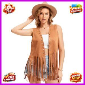 Brand new and in flawless condition — this eye-catching fringe vest delivers a bold, retro look perfect for Halloween, themed parties, or adding a bohemian touch to your everyday style. The faux suede is soft, the fringe adds movement, and the metal rivets provide authentic western detail.