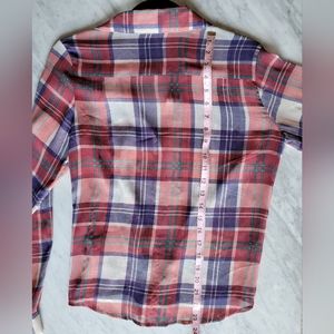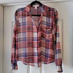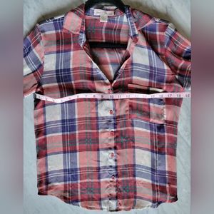 Band of Gypsies Plaid Blouse Small Red Checker Long Sleeve Button Up Casual