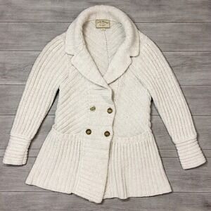 Lucky Brand Womens Small Cream Wool Blend Double Breasted Shawl Cardigan Sweater