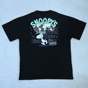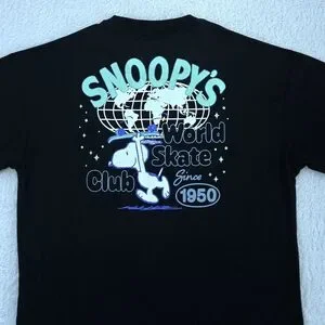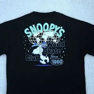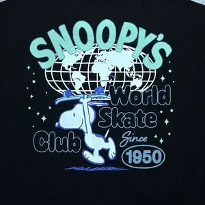 Small graphic on front left chest with "Snoopy's World Skate Club" and Snoopy🐕 riding a skateboard🛹