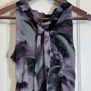 A Byer Ruffle Front Tie Back Blouse Sleeveless Abstract Top S