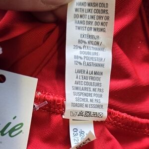 Description: Lightly padded halter bikini top that ties in front in bright red.