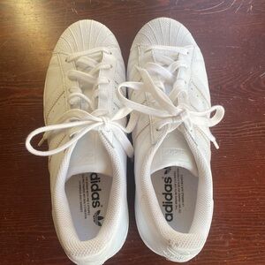 Excellent used condition Adidas Superstar sneaker. Women's size 8. All white. Minimal signs of wear, please inspect photos carefully.