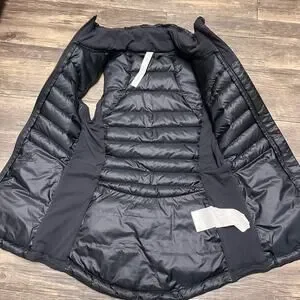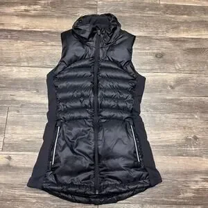 Lululemon Down For A Run Vest Black Goose Down Stretch Panels Sz 2 $148 retail