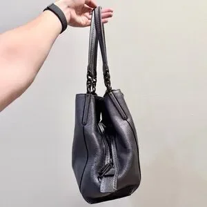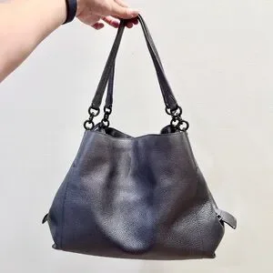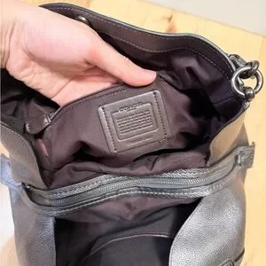 Coach 1941 Metallic Leather Dalton 31 Triple Compartment Shoulder Bag In Grey! Gently worn with light wear to bottom bag hardware and light scratches on exterior! Interior is pristine! Open to offers or questions!