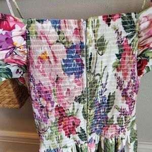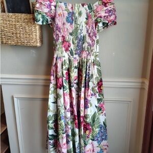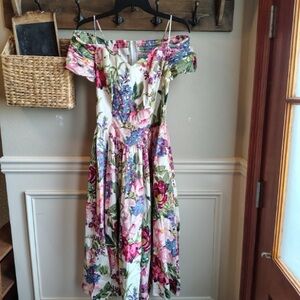 Vtg Moda Int’l Floral Midi Dress Women 10 Corset Ruched Off The Shoulder Prom