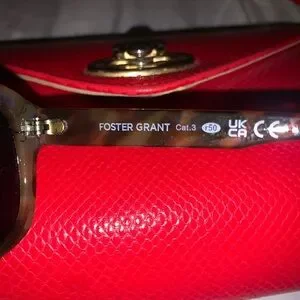 Classic tortoiseshell acetate frame. Dark lenses provide strong coverage. Lightweight and comfortable. Timeless, versatile style. Updated aviator style with small cut out above nose , aviator looks amazing on all face shapes! Glasses are labeled on the inside arm with the brand name, Foster Grant makes great sturdy sunglasses. Timeless!