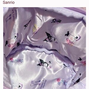 Soft silky floral print exterior with Kuromi on the front and the words “Cheeky but Charming!”