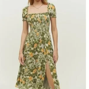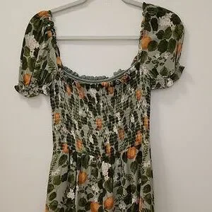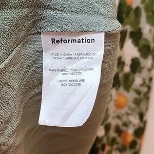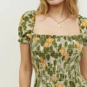Reformation inka Floral Green and Orange Dress Drop Waist Sz Med