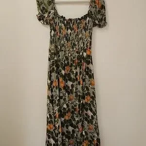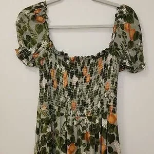 Reformation inka Slit Floral Green and Orange Dress Sz Med