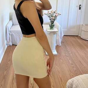 Cream Lace-Up Corset Mini Skirt with Garter Details, Size Small