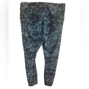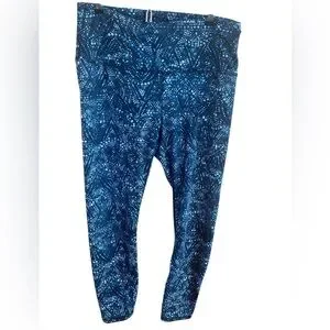 Navy Geometric High Rise Leggings Size Large 25” Inseam Yoga Athleisure