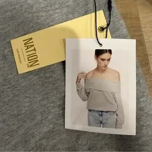Stylish off-shoulder gray sweater with a wide fold-over neckline. Soft, cozy fabric for all-day comfort. Modern relaxed fit that pairs easily with jeans or skirts. Easy-to-wear gray color for versatile styling.