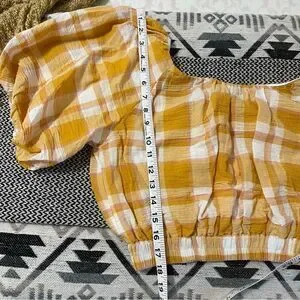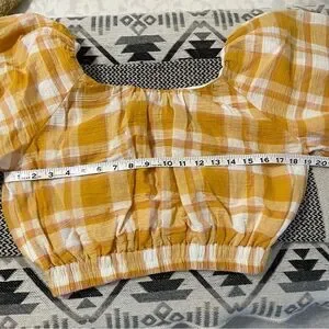 MNG by Mango Yellow Plaid Cotton Cropped(elastic hem)Peasant Top Sz-S NWT!