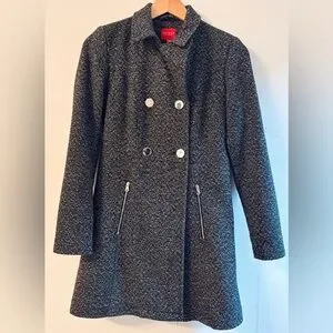 Stay stylish and warm with the Guess Women's Black Double-Breasted Coat. This elegant coat features a classic design with a modern twist, perfect for any occasion.