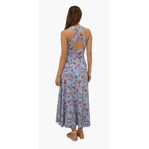 Pact Organic Cotton Fit & Flare Maxi Dress in size XL featuring a soft blue floral print. This flattering dress features a scoop neckline, open cross-back detail, and a flowing maxi-length silhouette. Made from Pact’s signature organic cotton jersey knit with stretch for comfort and shape.