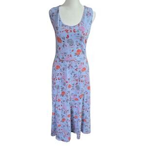 Pact Organic Cotton Fit & Flare Midi Dress Size XL stretch knit floral Blue