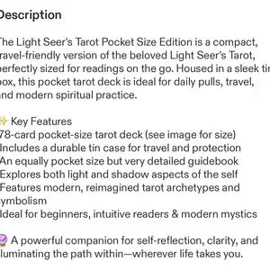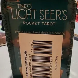 The Light Seer's Pocket Tarot Deck in a compact tin. Features vibrant artwork on the cover. new sealed in plastic