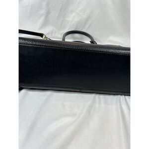 Chic black tote with matching pouch. Sleek design with logo detail. Ideal for everyday use.