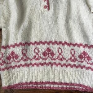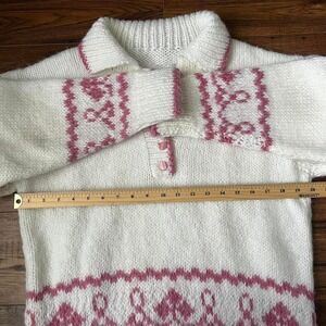 Vintage Handknit Wool Collar Button‎ Pullover Sweater White Pink Medium Coquette