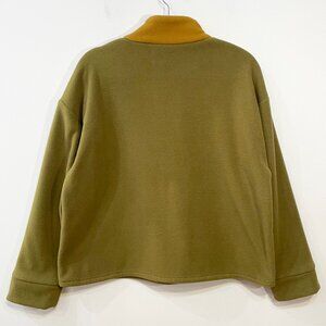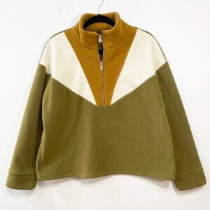 EUC Sezane Adana Colorblock Half Zip Sweatshirt Olive Ecru Brown 40, 8, M