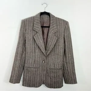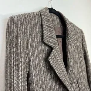 Vintage tailored preppy old money tweed stripe brown fitted jacket blazer