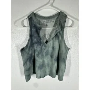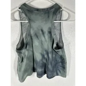Gilly Hicks Tank Top Womens XS Green Tie Dye Ribbed Cropped Split Neck Racerback