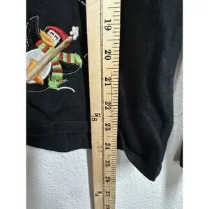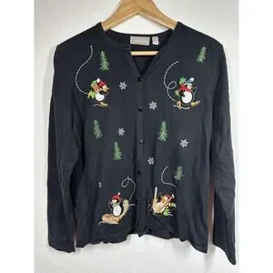Craft & Barrow Sweater Womens Medium Black Penguin Christmas Cardigan Holiday
