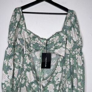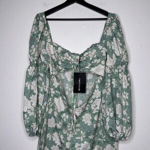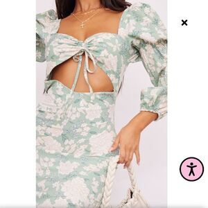 PrettyLittleThing Petite Sage Floral Print Cut Out Mini Dress Size 12