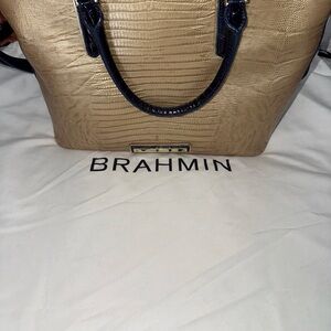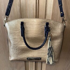 Brahmin Gold and Navy Tote Bag with Tassel
