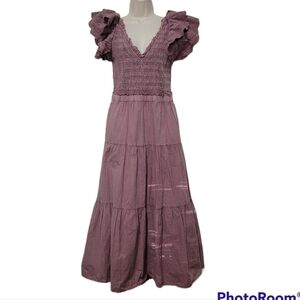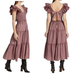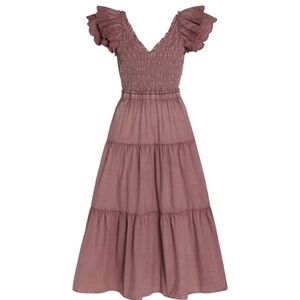 Sea New York Heidi Flutter Sleeve Tiered Dress Midi Open Back Rose Women's 10