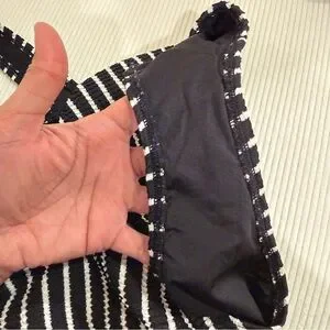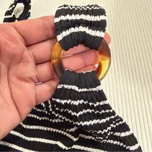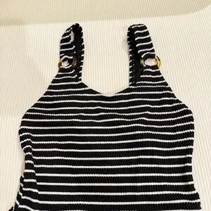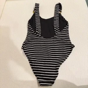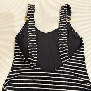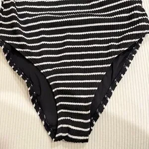 New Look Women’s Ribbed One Piece Swimsuit Striped Black & White Minimalist sz S